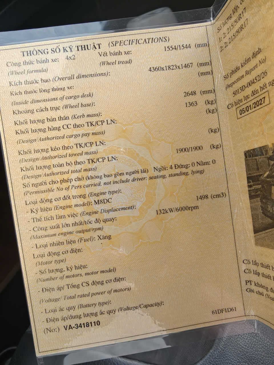 ♦ Đăng kiểm đầy đủ, giấy tờ hợp lệ